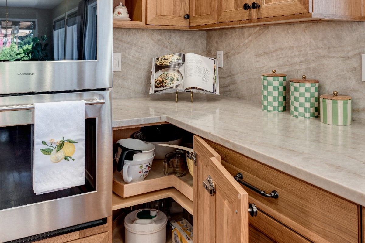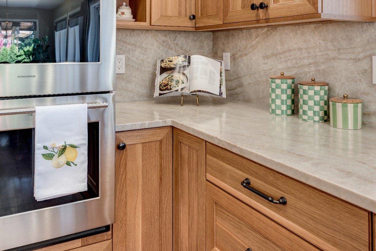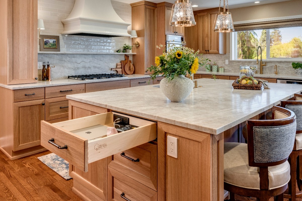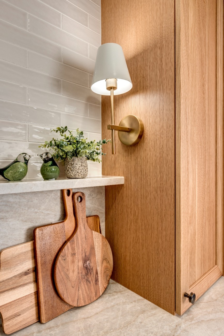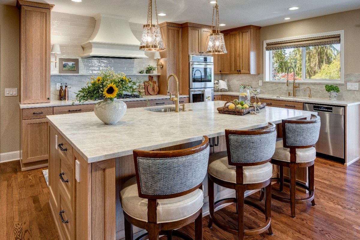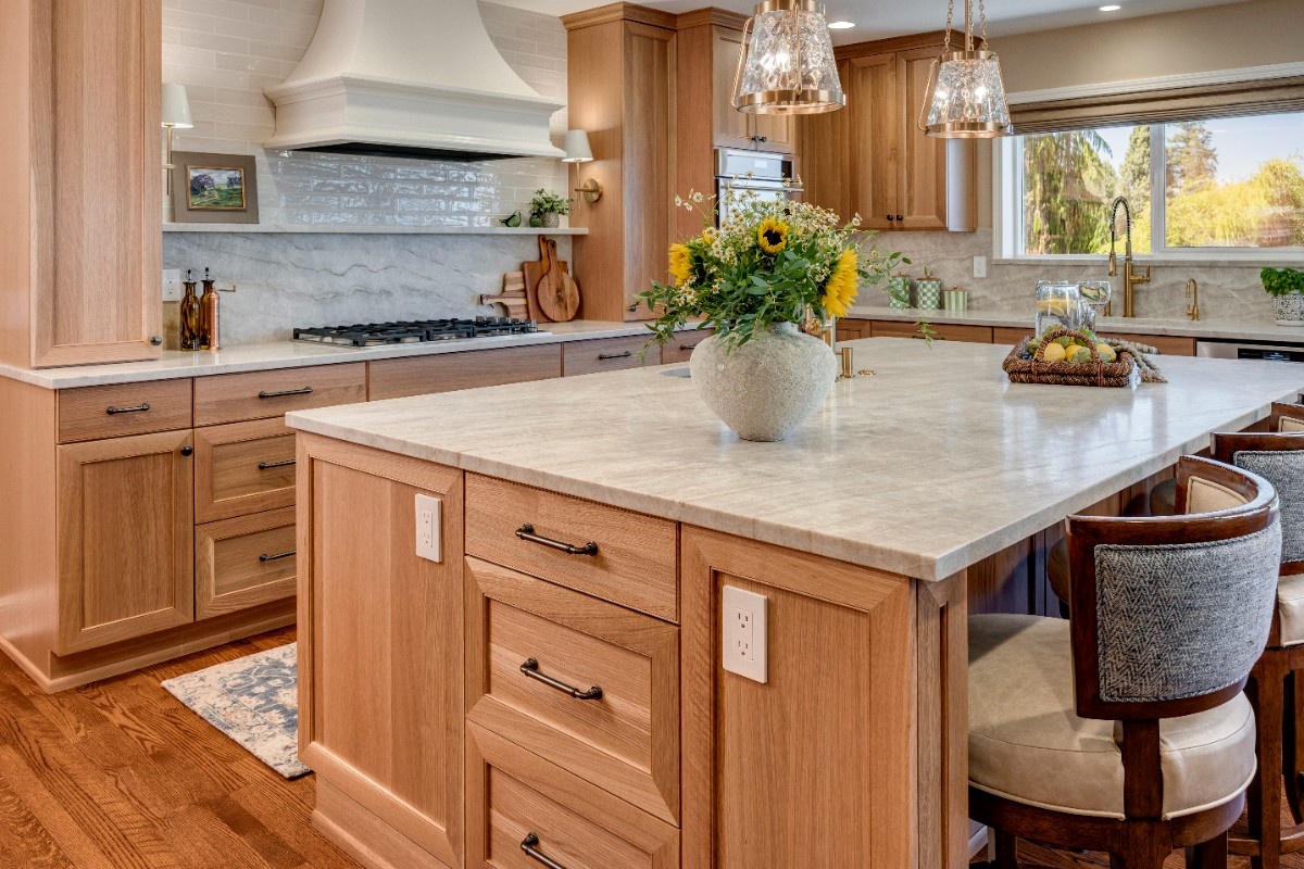 This kitchen blends warmth and sophistication with a striking mix of natural